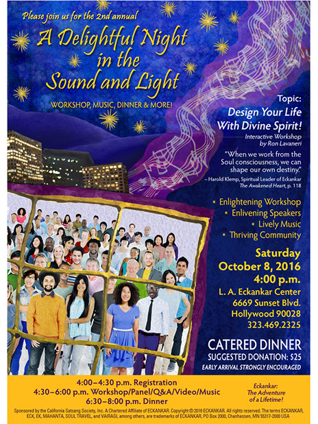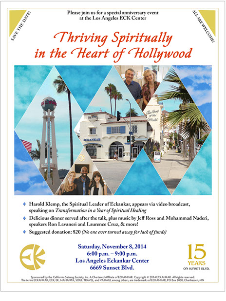 Other projects have included a window display for the Los Angeles Eckankar Center, located on busy Sunset Blvd., with multiple posters and signs lit up for night viewing.